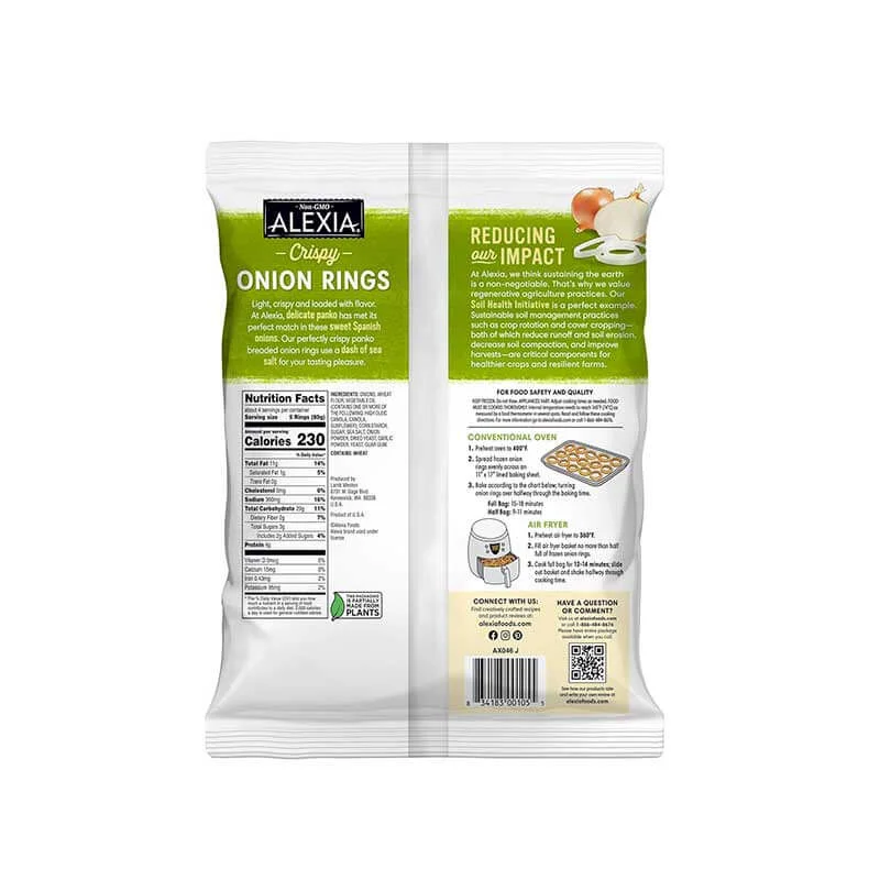 • Includes one 11 oz. bag of Alexia Crispy Onion Rings with Panko Breading and Sea Salt